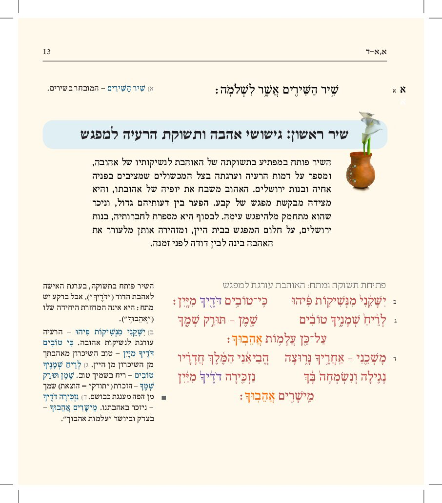 והן בהבנת העומק הרעיוני של מושג האהבה על ידי התבוננות בשיר השירים למן הופעת נפתולי האהבה ועד ההגעה לחותם האהבה. ❤️