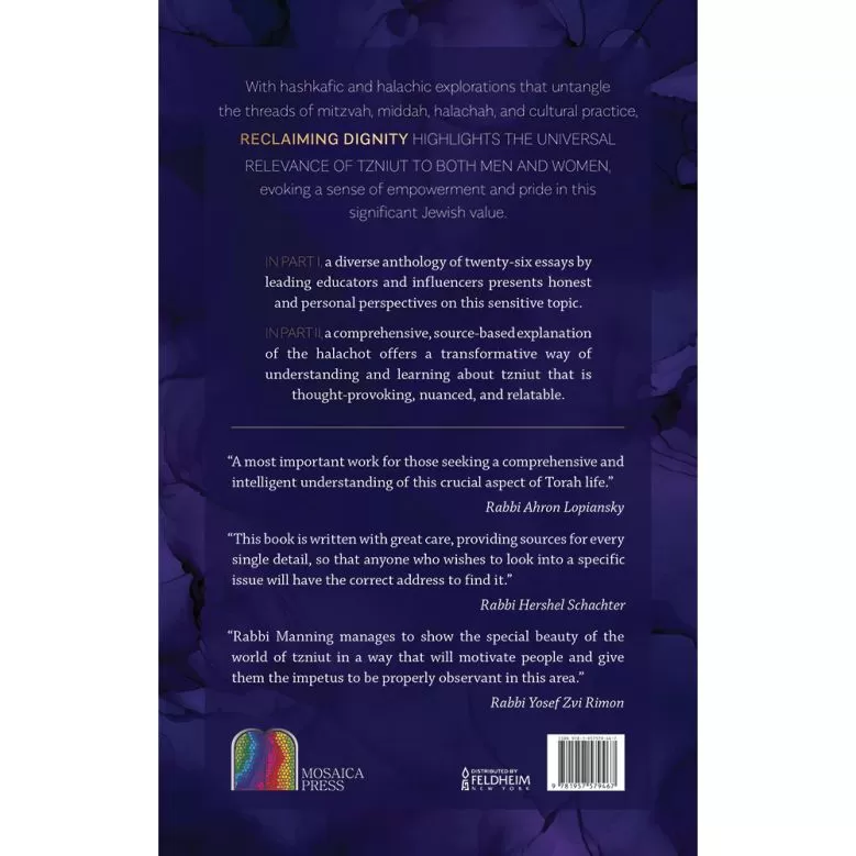With hashkafic and halachic explorations that untangle the threads of mitzvah, middah, halachah, and cultural practice, Reclaiming Dignity highlights the universal relevance of tzniut to both men and women, evoking a sense of empowerment and pride in this significant Jewish value.